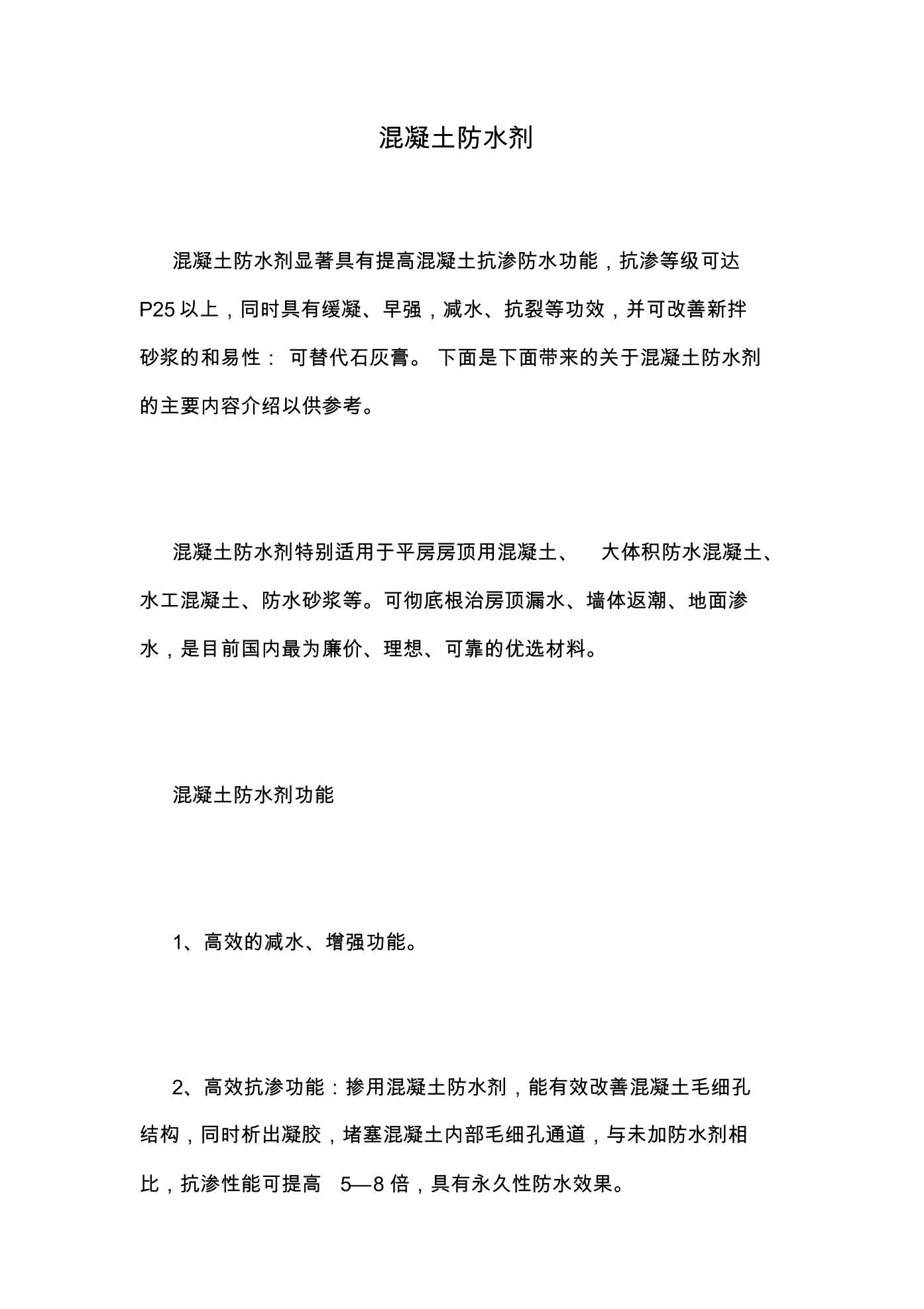混凝土防水剂特别适用于平房房顶用混凝土、 大体积防水混凝土、
