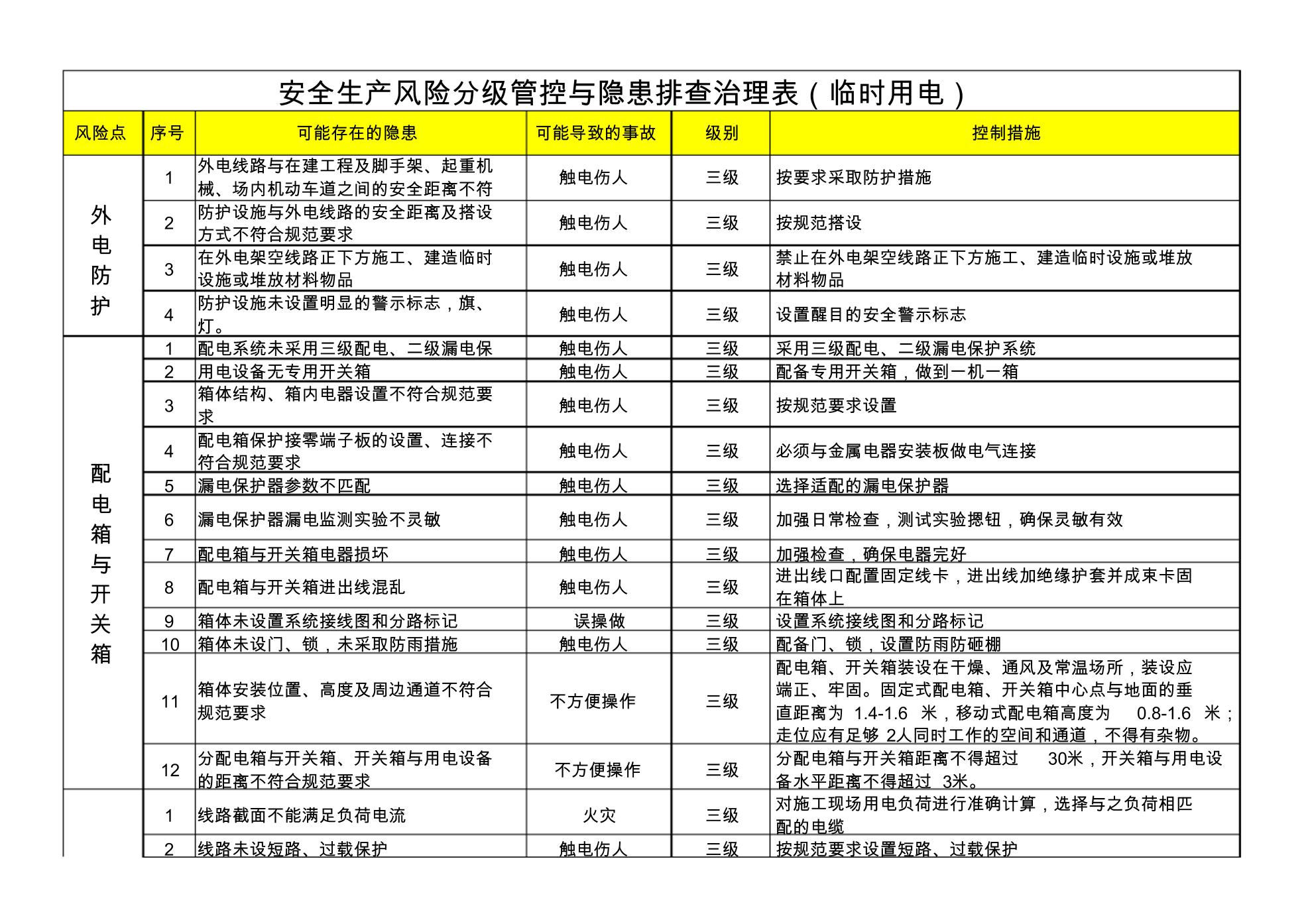 1 配电系统未采用三级配电、二级漏电保 触电伤人 三级 采用三级配电、二级漏电保护系统