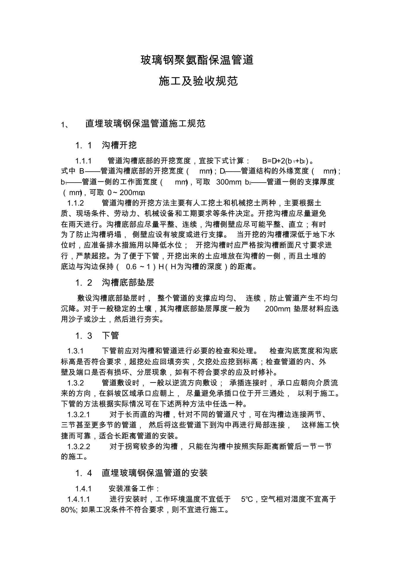 1、 直埋玻璃钢保温管道施工规范