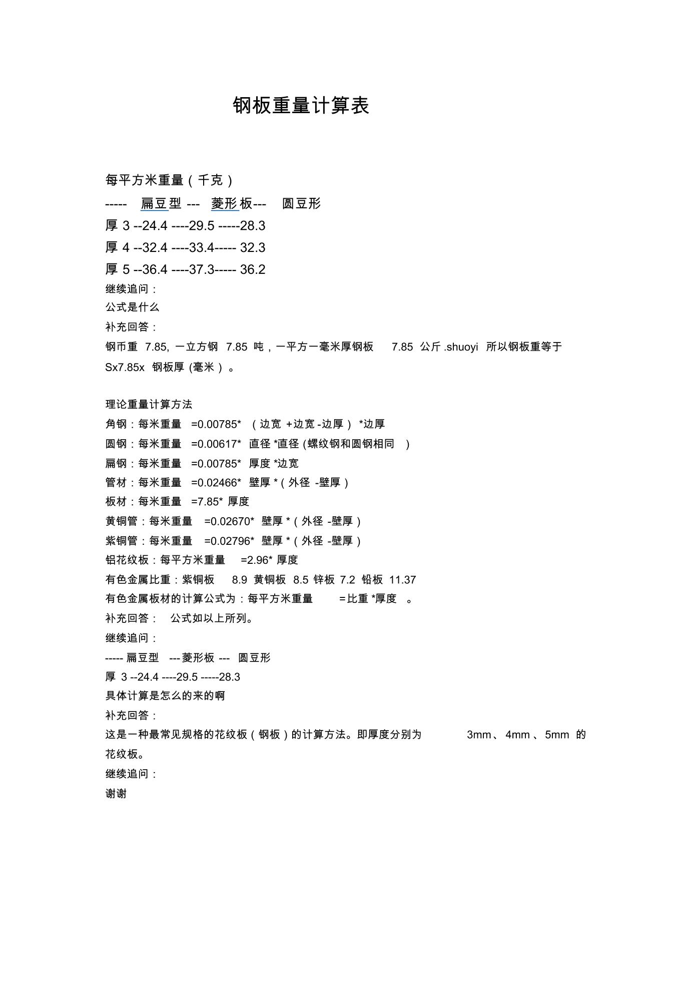 钢币重 7.85, 一立方钢 7.85 吨,一平方一毫米厚钢板 7.85 公斤 .shuoyi 所以钢板重等于