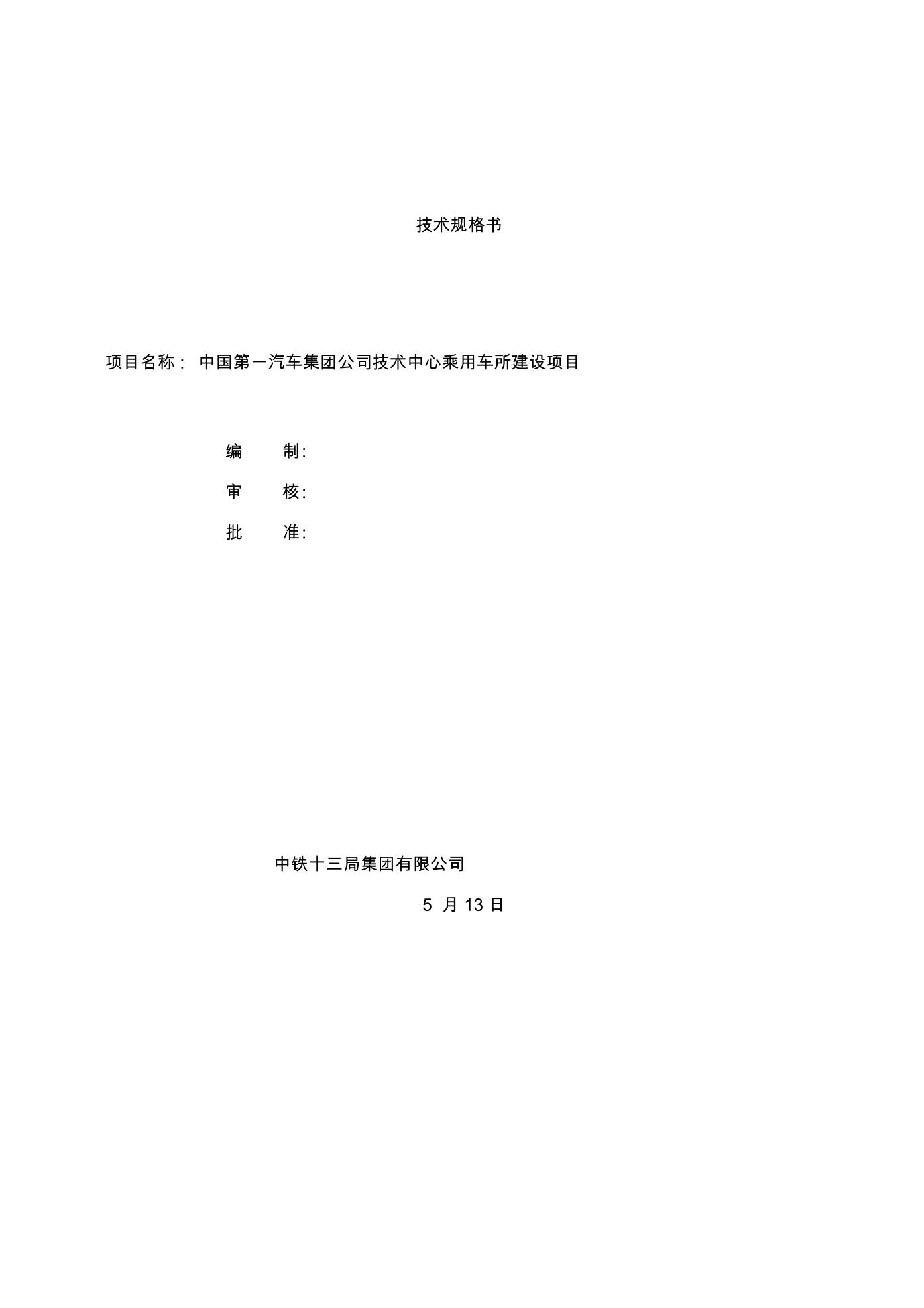 项目名称 : 中国第一汽车集团公司技术中心乘用车所建设项目