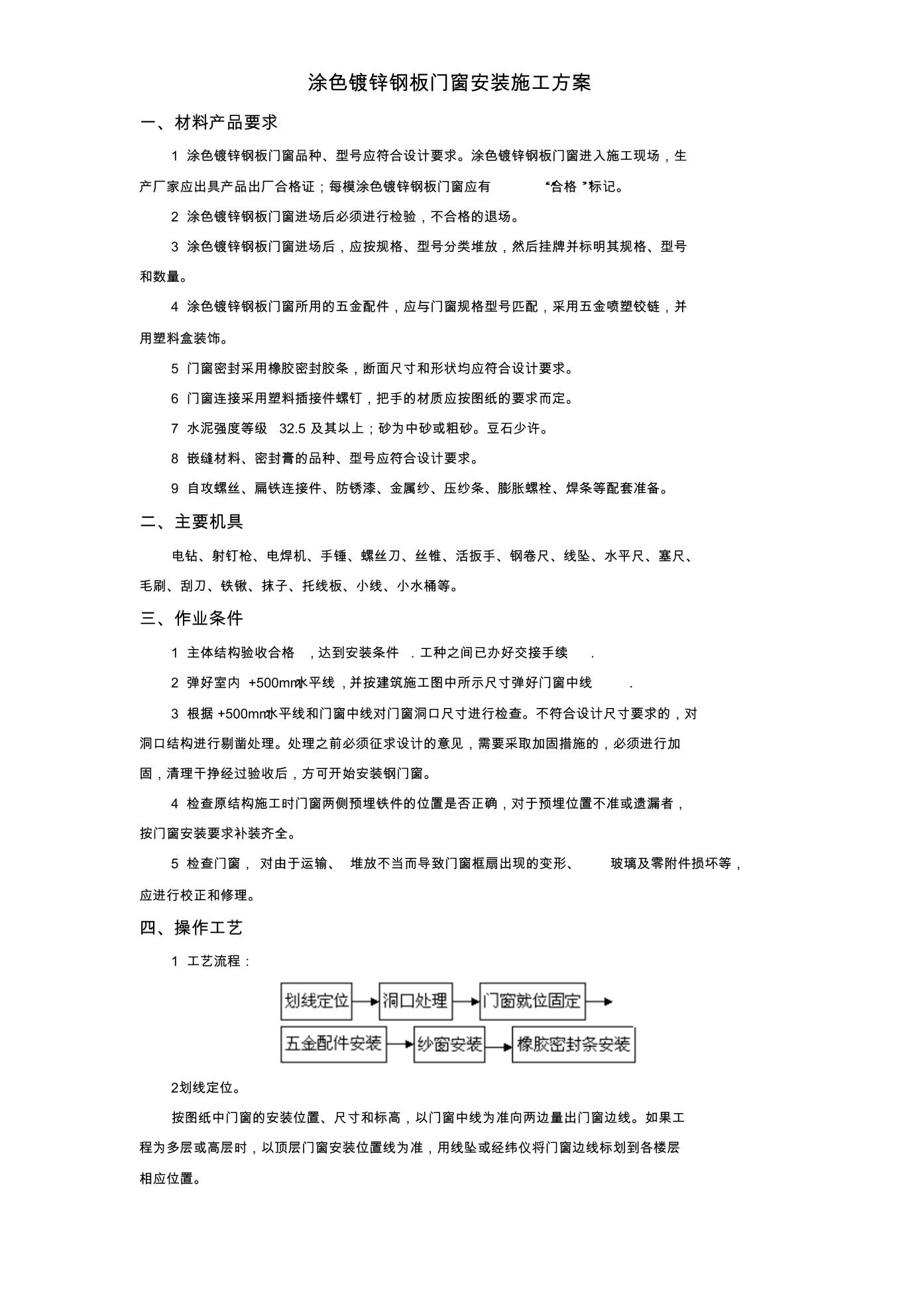 1 涂色镀锌钢板门窗品种、型号应符合设计要求。涂色镀锌钢板门窗进入施工现场,生