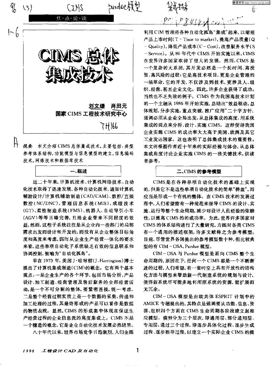 提要 本文夼绍CIMS总体集成技术,主要包括:典型