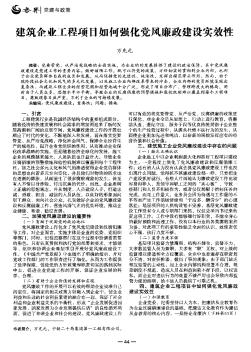 党要管党、从严治党战略的全面实施,为企业的的发展提供了建设的政治保障。其中党风廉政建设是党建工作的重要内容。做好该项工作,既可以将党的政策、方针切实的贯彻到企业内部,也利于企业党员群体自我的成长和发展,从而保持党的先进性、纯洁性,发挥出模范带头作用。然而,由于现阶段社会文化和风气的多元化发展,以及施工企业内部改革带来的冲击,企业内部的党员环境呈现出复杂性。而建筑工程企业的经营范围和经营地域十分广泛,形成了项目分布广、管理跨度大的格局,同时由于人员众多,思想水平不平衡,导致企业的反腐倡廉的预警措施和监控机制难以覆盖到每个工程项目,腐败现象El益严重,不利于企业的可持续发展。