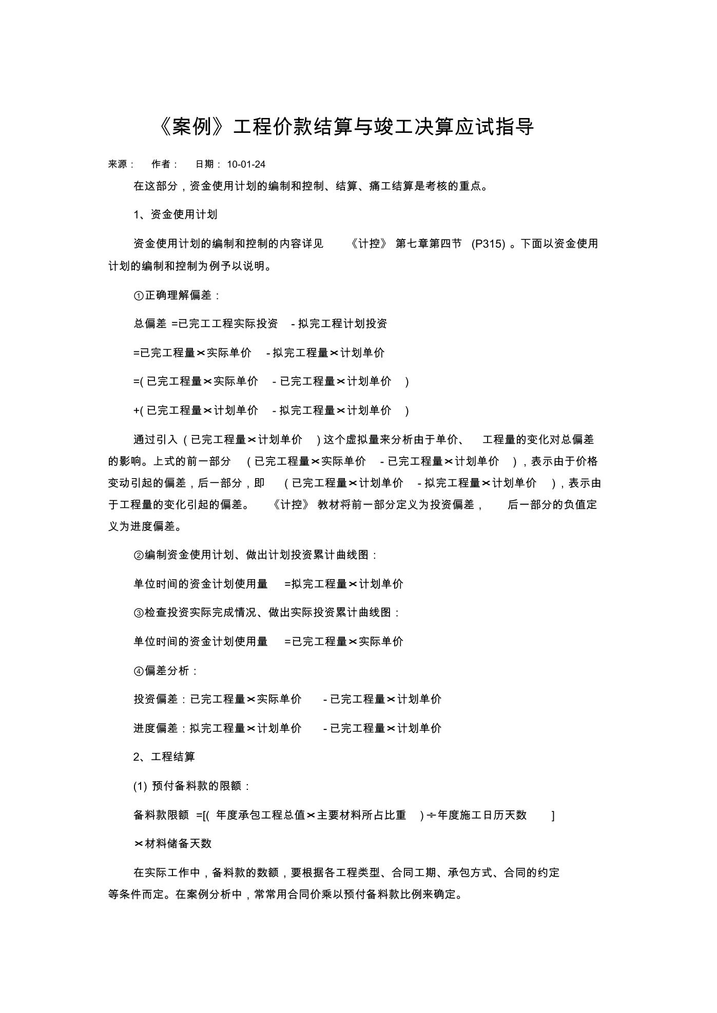 在这部分,资金使用计划的编制和控制、结算、痛工结算是考核的重点。