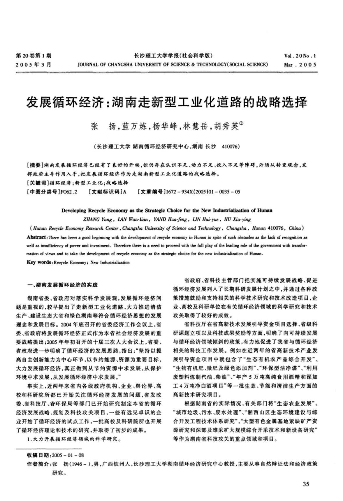 2.张扬;刘解龙 发展循环经济是大势所趋 2005